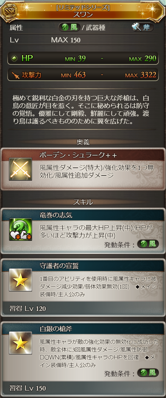 キャラ解放武器「スワン」
